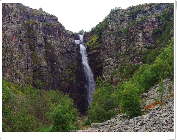 Podróżując rodzinnie kamperem udaliśmy się spontanicznie w kierunku regionu Dalarna i jednego z najwyższych wodospadów w Szwecji, czyli Njupeskärs vattenfall. Wieczorową porą dotarliśmy na parking, z którego następnego dnia wyruszyliśmy na jednodniową pieszą wędrówkę. Wodospad wyglądał pięknie, choć poziom wody wówczas był dość niski. Cała górska okolica zachwycała swoją wyjątkowością i nietuzinkowością. Njupeskär to wodospad na rzece Njupån, która przepływa przez Park Narodowy Fulufjällets położony w północno-zachodniej Dalarnie. Ma całkowitą wysokość spadku 125 metrów. Wyższe od niego są Greven i Grevinnan znajdujące się w Parku Narodowym Stora Sjöfallet. Mają one spadki ponad 250 metrowe. Njupeskärs vattenfall spada na krawędź zerodowanego piaskowca…