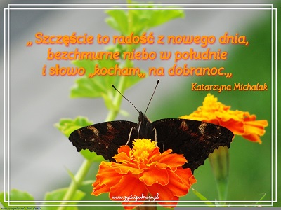 „Szczęśliwi ci, którzy nauczyli się cieszyć małymi rzeczami.” Jeremias Gotthelf „Opłacz to, wykrzycz to, a później weź się w garść, stań na nogi i zacznij żyć. Możesz żyć tak szczęśliwie, że głowa mała.” Adam Szustak „Dziwne są ścieżki szczęścia. Niektórzy potrafią zbudować swoje szczęście niemal z niczego, ocalić i rozdmuchać nawet najbardziej nikłą iskrę, choć wiatr i deszcz.” Hanna Kowalewska „Ze szczęściem bywa czasami tak jak z okularami, szuka się ich, a one „siedzą” na nosie. Tak blisko!” Phil Bosmans „Aby być szczęśliwym, nie należy przeglądać się w lustrze ulicy.” Jacek Bocheński „Wdzięczność jest najpiękniejszą formą szczęścia:…